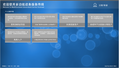 以整合“政務信息化”為基礎(chǔ),通過自助服務一體機,延伸“政務信息化”的服務內(nèi)容和擴大覆蓋范圍,與現(xiàn)有的各政務系統(tǒng)做對接,實現(xiàn)身份認證、指紋采集、資料打印、無人自助導向服務、辦事進度查詢、政務公開宣傳、各類繳費業(yè)務、材料自助收取流轉(zhuǎn)等事項辦理。根據(jù)不同單位的需求,政務自助機可以設置不同的業(yè)務功能,做到全程自助化。